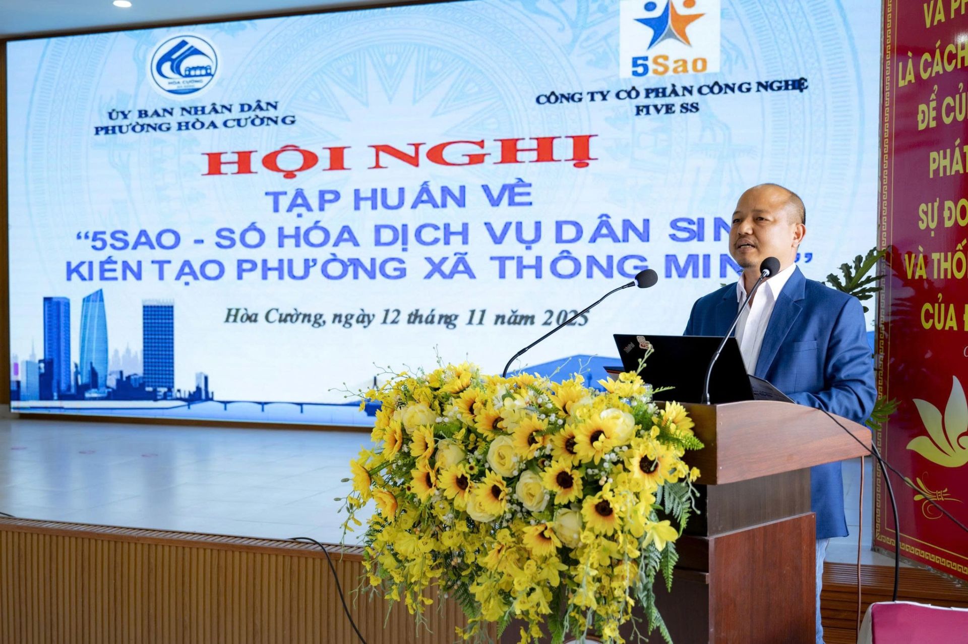 Phát biểu tại hội nghị, ông Phan Văn Thỏa – Phó Chủ tịch UBND phường nhấn mạnh tầm quan trọng của việc chuyển đổi số và số hóa dịch vụ dân sinh, đồng thời mong muốn các Tổ trưởng Tổ dân phố sau buổi tập huấn sẽ tích cực tuyên truyền, hướng dẫn người dân và các hộ kinh doanh cài đặt, sử dụng ứng dụng 5Sao trong đời sống hằng ngày, qua đó góp phần đưa phường Hòa Cường trở thành một trong những đơn vị tiên phong trong việc thực hiện hiệu quả chuyển đổi số toàn dân, toàn diện mà thành phố Đà Nẵng đang hướng tới.